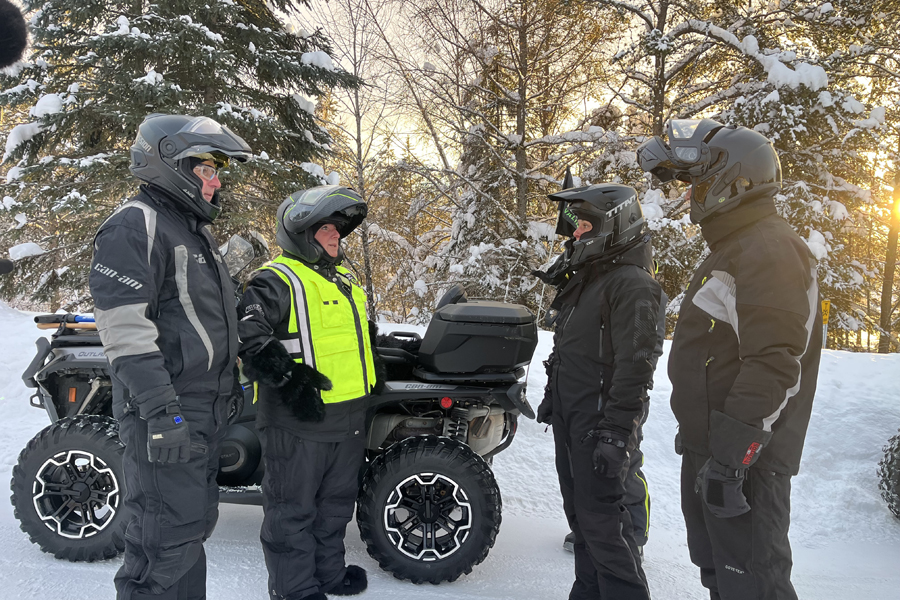 Dany Gaudreault (Agent de liaison Saguenay–Lac-Saint-Jean), Sophie Simard (Présidente du Club Quad Aventure Valin), Marie-Eve Dicaire et Hugo Langlois lors du tournage du dixième épisode de l'émission Horizon Performance.